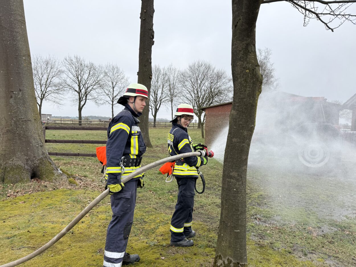 Am Nachmittag folgte mit der QS1 die Abschlussprüfung des Grundlehrgangs für neue Feuerwehrmitglieder in Wohnste statt. Diese Prüfung bildet die Grundlage für den aktiven Einsatzdienst und umfasst sowohl theoretische als auch praktische Inhalte. Ziel ist es, die grundlegenden Kenntnisse und Fertigkeiten zu erlernen und zu überprüfen, die für einen sicheren und effektiven Einsatz erforderlich sind.
